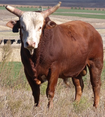 | Lot #79 - #0 Hangover - $4,750.00 5yr Old - Left Delivery Son of Sling Blade. Would be good breeding bull. Needs hauled and bucked. 21-22 points. Real nice bull, cowboys like to get on him. CONSIGNOR: Mo Betta Bull Co. - Maury Tate - Apache, OK |