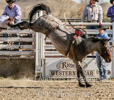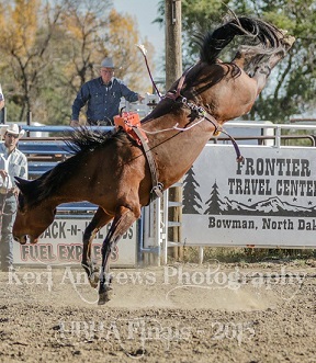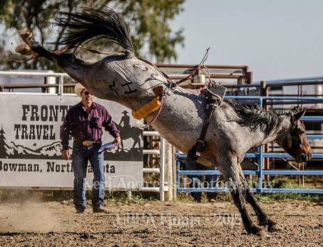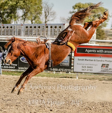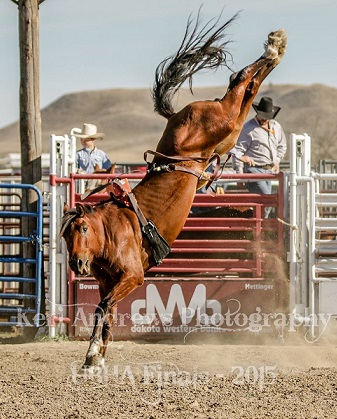 | Lot #122 - #253 Fancy Dance - $2,500.00 3yr Old - Bay Gelding Finished 4th in the 2015 UBHA 3yr Old Year End Standings 2015 UBHA 3yr Old Futurity Finals Champion w/ 91 points Faith, SD futurity winner with 89 pts. Stumbled in Eagle Butte, SD 80 pts. Fell down in Perkins, OK 77 pts. Bucks very hard. Mother is -53 Fancy Dance that Classic Pro Rodeo used to haul. Sire is Brother Baldy, Little Baldy son. CONSIGNOR: Lesmeister Bucking Horses - Lance Lesmeister - Eagle Butte, SD |
