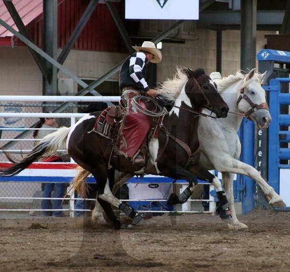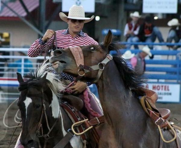 | Sharp is an outstanding pickup horse and ranch horse. He has picked up in the bareback, saddle bronc, and cleared the arena in the bull riding. He will pull whatever is behind him and loves to do it. Sharp also makes a great judges horse and flag horse. |