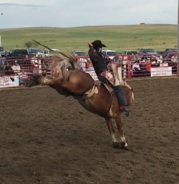 | #9 Black Sunday - $5,500.00 DOB: 2013 - Left Delivery - Black Mare This 5yr old black mare is Double Bred Major. She was a 2018 CCA Finalist in the Barebacks. She has had 6 trips as a 4yr old and 8 trips this year as a 5yr old. Consignor: Dale Woodward - Woodward Bucking Horses - Wainwright, Alberta |