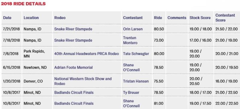 | #6M0 Deep Springs - $25,000.00 DOB: 2010 - Left Delivery - Grey Gelding #6M0 Deep Springs is a big, grey, ranch raised, eight-year old gelding. In 2018 this horse had an average stock score of 43.5. His most recent trip was at the Sioux Falls Premiere PRCA Rodeo where Will Lowe scored an 86.5 with a stock score of 44.5. Look at his 2018 PRCA judges markings. |